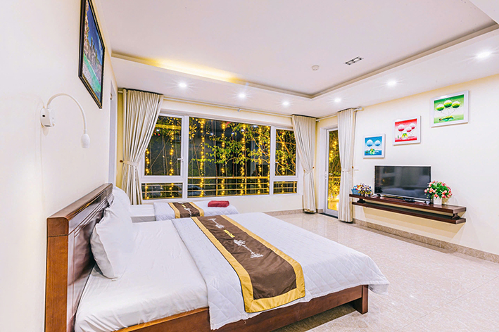 👉 7 phòng ngủ khép kín - mỗi phòng là một không gian nghỉ ngơi riêng biệt, nội thất tối giản nhưng tinh tế: giường kingsize, ga gối trắng tinh khôi, đèn ngủ vàng ấm. Bàn trang điểm và tủ quần áo gọn gàng. Các phòng đều có cửa sổ lớn hoặc ban công, nhìn ra sân vườn hoặc hồ bơi - không khí trong lành và riêng tư tuyệt đối. Mỗi phòng đều có TV màn hình phẳng (32 - 43 inch ) kết nối truyền hình cáp hoặc smart TV tùy phòng. Điều hòa riêng 2 chiều, làm mát nhanh, êm ái. WC khép kín vòi sen nóng lạnh, gương soi, máy sấy tóc, khăn - giấy đầy đủ.
